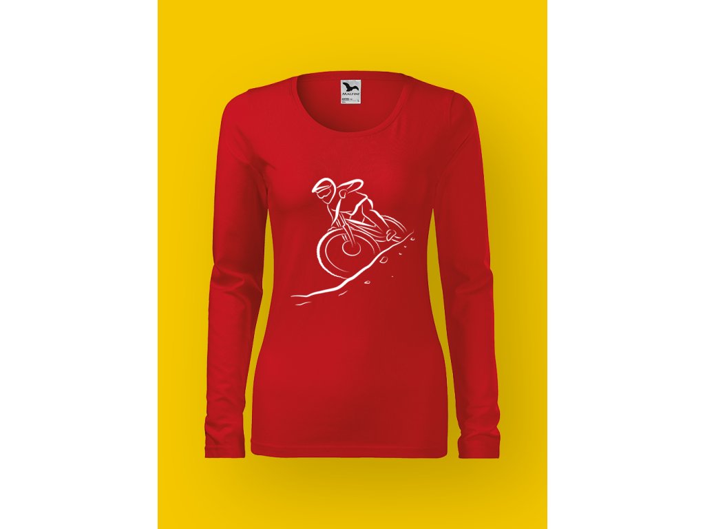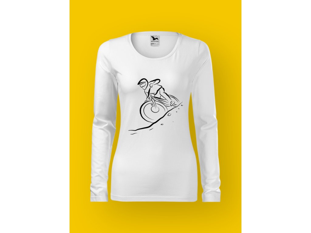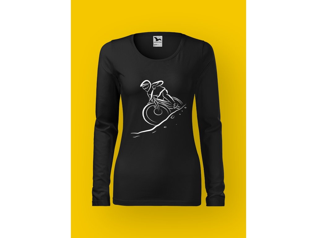 Tohle tričko je pro ženy, které nepotřebují hladkou cestu, protože jim bohatě stačí gravitační zrychlení, strach v očích a srdce v krku. DOWNHILL není jen sport — je to životní rozhodnutí ignorovat veškeré varovné signály mozku a pustit se dolů rychlostí, při které se i fyzika modlí.