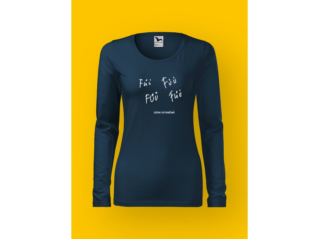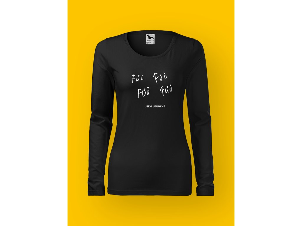 Tohle dámské tričko stojí na hravém dvojsmyslu, který je stejně nakažlivý jako rýma. Nápis JSEM UFUNĚNÁ může znamenat nachlazení, únavu, zahlcení… nebo prostě stav, kdy si jedeš svoje a nikomu se neomlouváš.