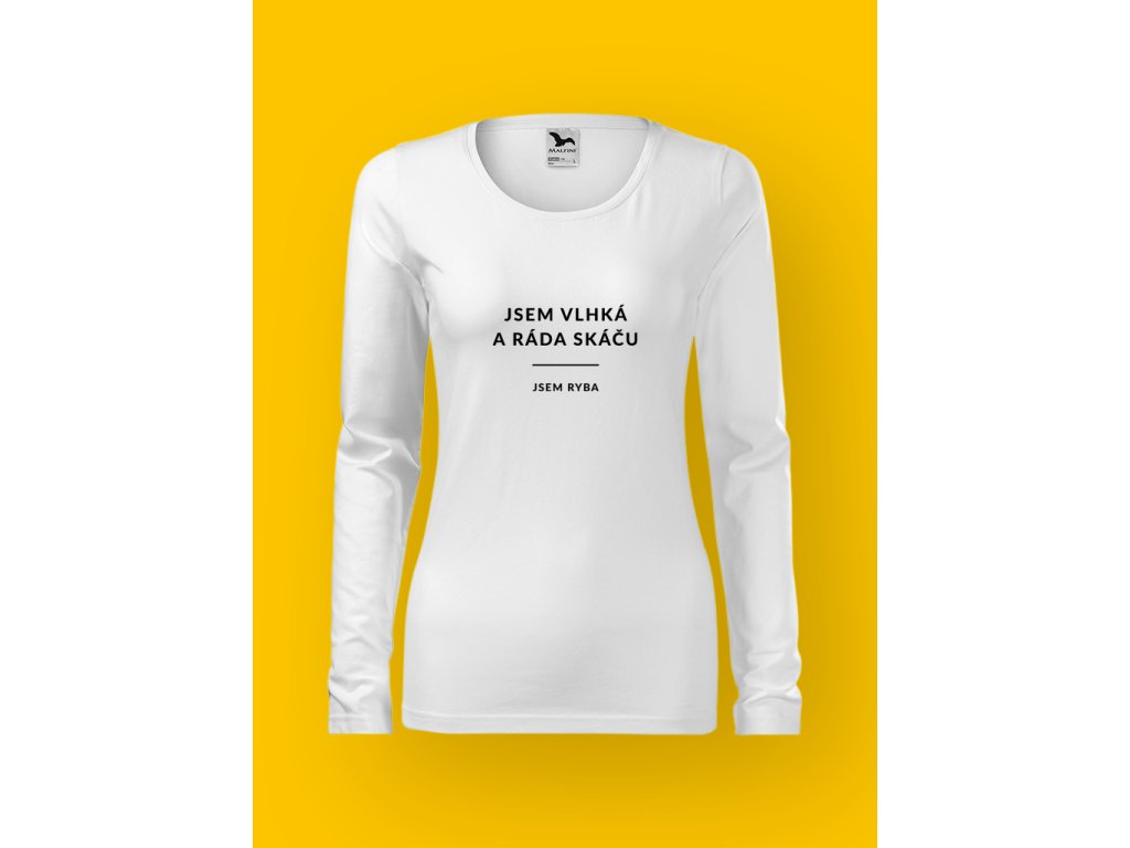 Dámské tričko s potiskem JSEM VLHKÁ A RÁDA SKÁČU