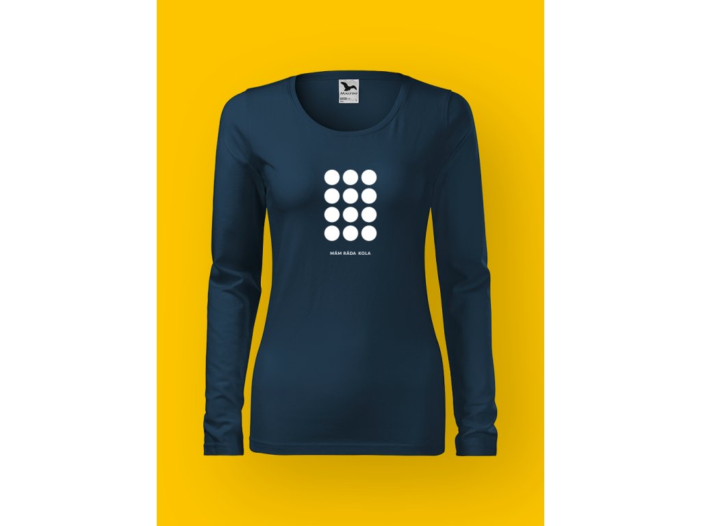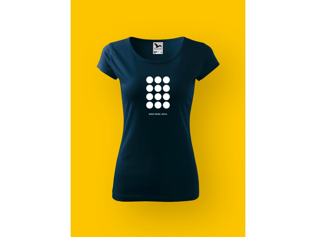 Tohle dámské tričko je minimalistická zpověď cyklistky. Tečky nahoře nejsou dekorace — jsou to kola. A nápis MÁM RÁDA KOLA to jen potvrdí pro ty, co to ještě nepochopili. Žádné slogany, žádné vysvětlování. Buď víš, nebo ne.