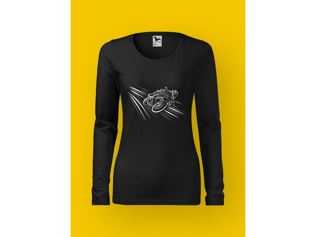Tohle tričko je pro ženy, které nechtějí pomalý život. Náklon to je tvůj přirozený stav, když svět přestane existovat a motor za tebe vyřve všechno. V rychlosti najdeš adrenalin, rovnováhu a kus sebevědomí, který se nedá vysedět doma na gauči.