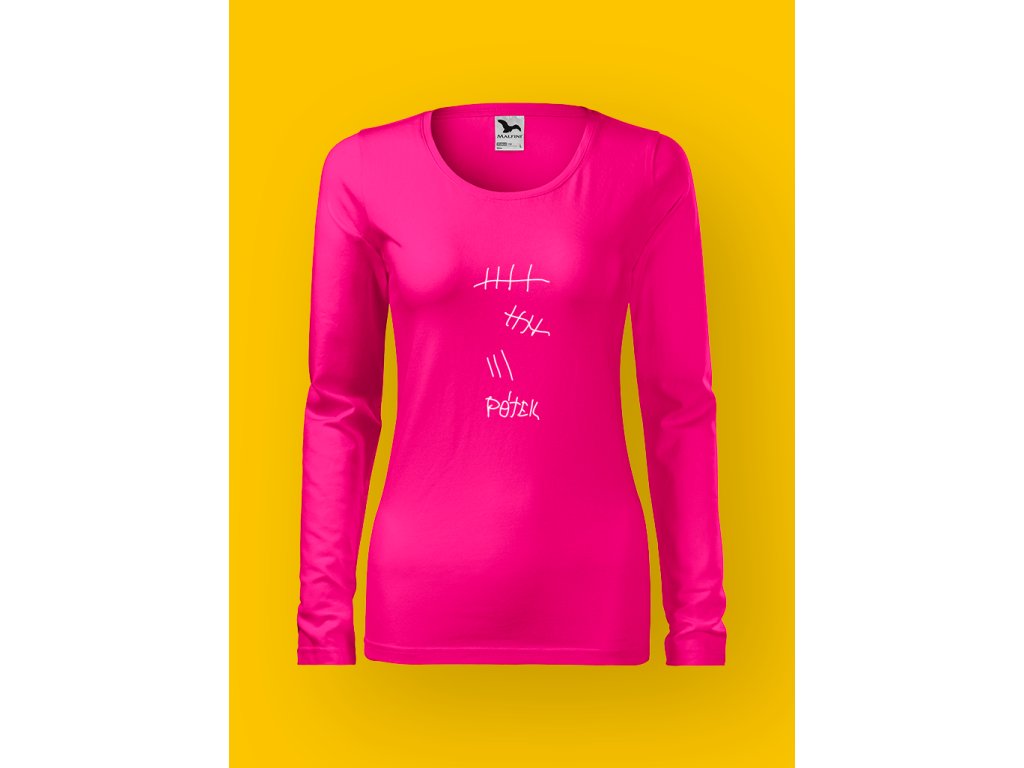 Tohle dámské tričko je záznam o přežití pracovního týdne. Čárky nejsou design, ale důkazní materiál, kolik toho padlo u pípy, než ses přestala tvářit jako slušná zaměstnankyně.