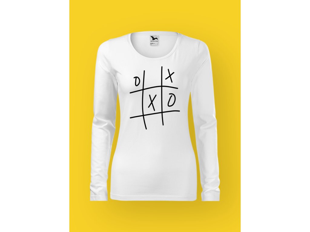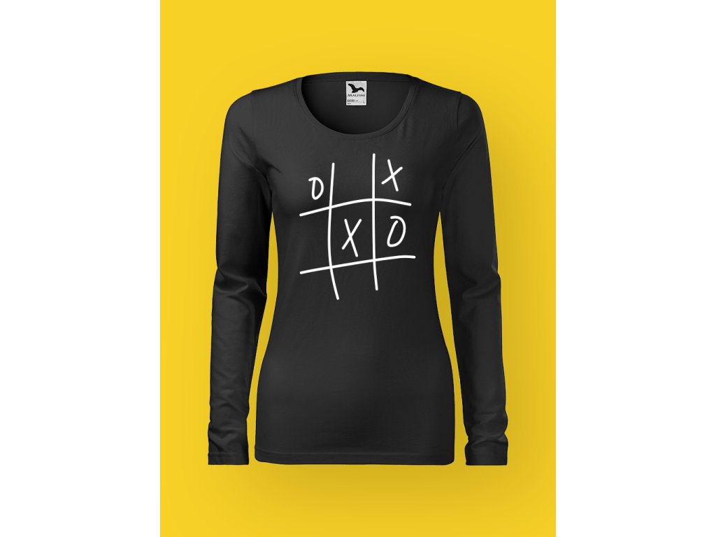 Minimalistická kresba s Xkem a kolečky na hrudi funguje jako magnet na zvědavé pohledy, protože kdo by odolal herní mřížce na člověku, co se tváří, že právě vyhrál? A ano – vyhrála jsi ještě dřív, než se někdo odváží zkusit svůj tah.