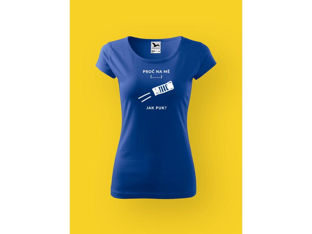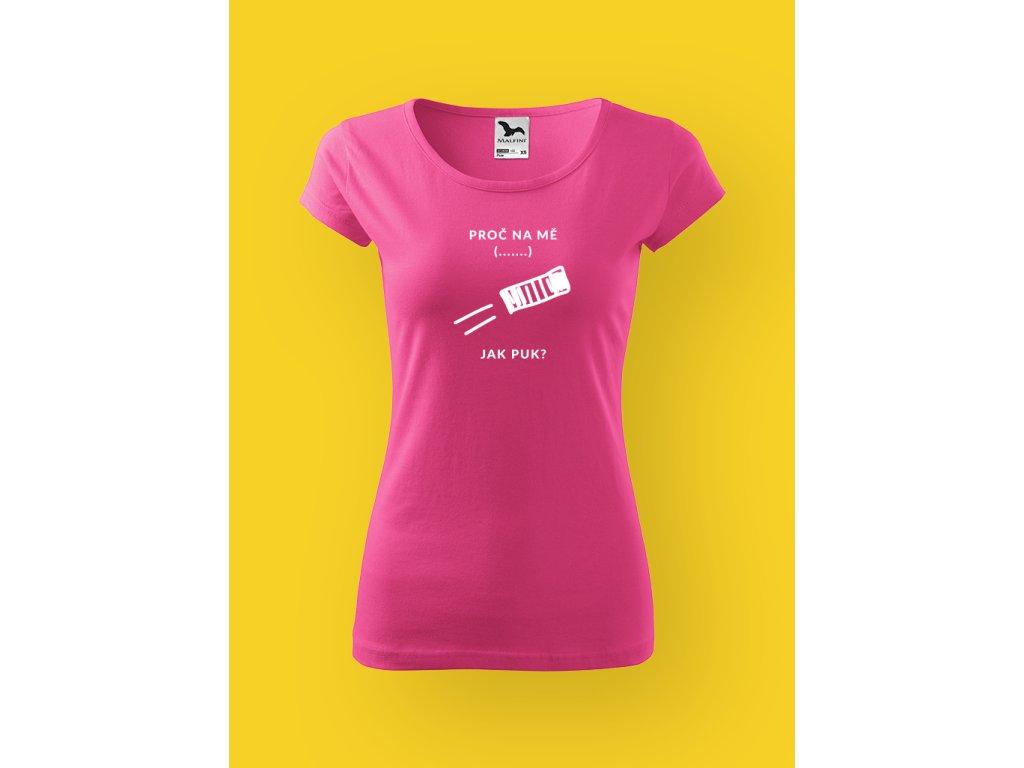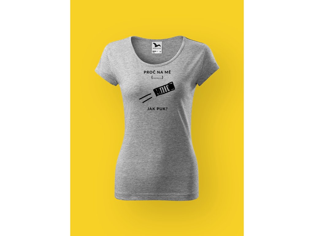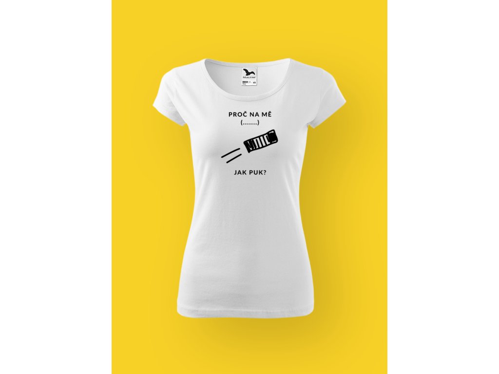 Dámské tričko s potiskem PROČ NA MĚ JAK PUK?