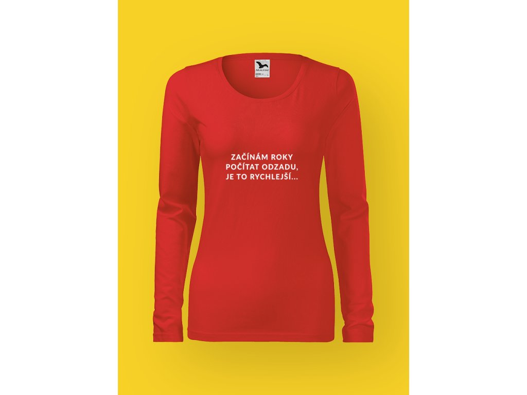Tohle dámské tričko je důkaz, že věk je jen špatně nastavená matematika. Nápis ZAČÍNÁM ROKY POČÍTAT ODZADU, JE TO RYCHLEJŠÍ není stížnost, ale chytré řešení. Když už čas letí, není důvod mu ještě pomáhat špatným směrem. Stačí změnit systém.