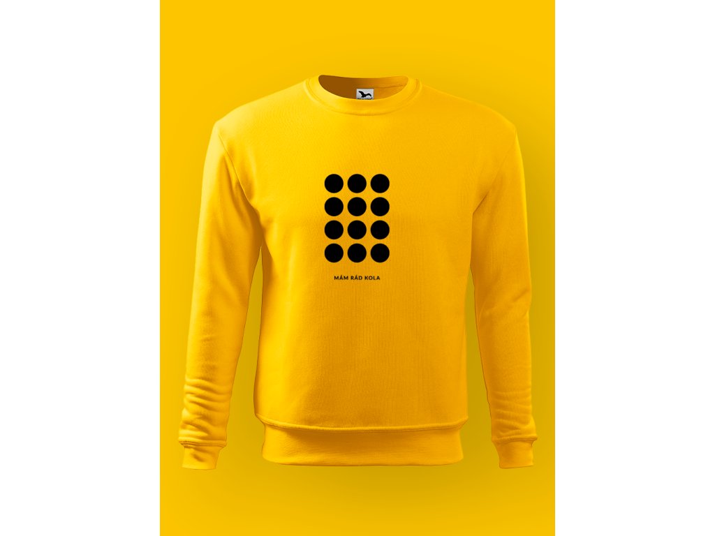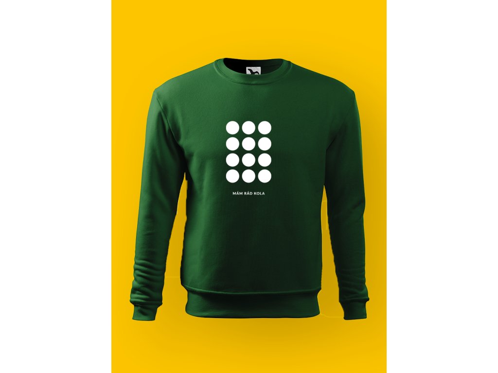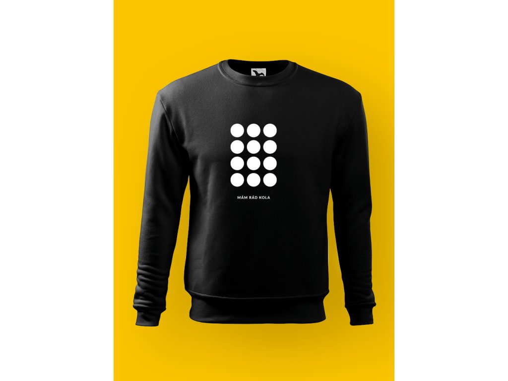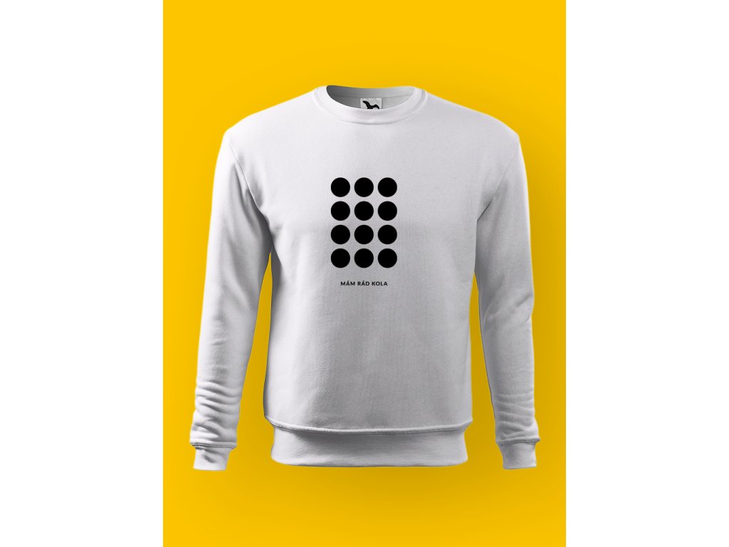 Tahle pánská mikina je minimalistická zpověď cyklisty. Tečky nahoře nejsou dekorace — jsou to kola. A nápis MÁM RÁD KOLA to jen potvrdí pro ty, co to ještě nepochopili. Žádné slogany, žádné vysvětlování. Buď víš, nebo ne.
