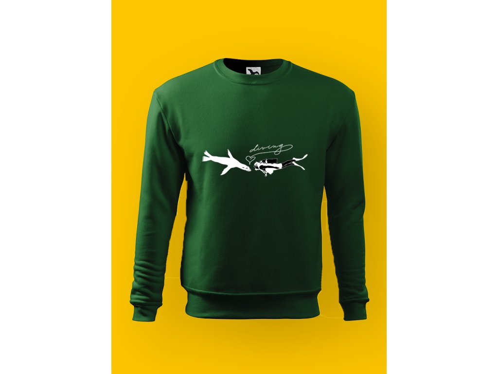 Tahle mikina zachycuje moment, kdy se potápěč potká s mořem a okolní svět na chvíli přestane existovat.