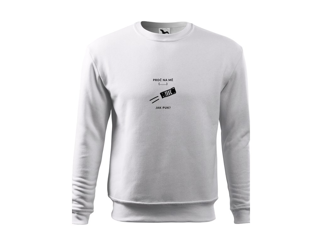 Pánská mikina s potiskem PROČ NA MĚ JAK PUK?