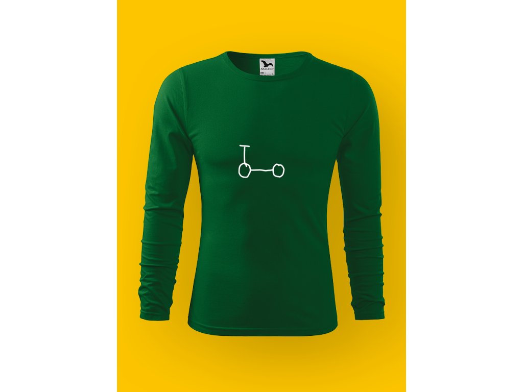 Přiznejme si to bez lhaní do kapsy – každej chlap na koloběžce vypadá trapně. Ne trochu. Hodně. A přesně o tom tohle tričko je. Je to upřímný a ironickej úsměv nad vlastní blbostí a veřejný přiznání.