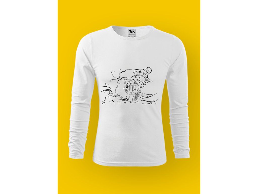 Motokros je sport, kde tě trať rozbije, srovná a pak tě pustí dál. Tohle tričko mluví jazykem lidí, co mají mozoly, unavený ruce a úsměv, kterej se objeví až po sundání helmy.
