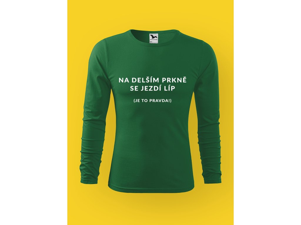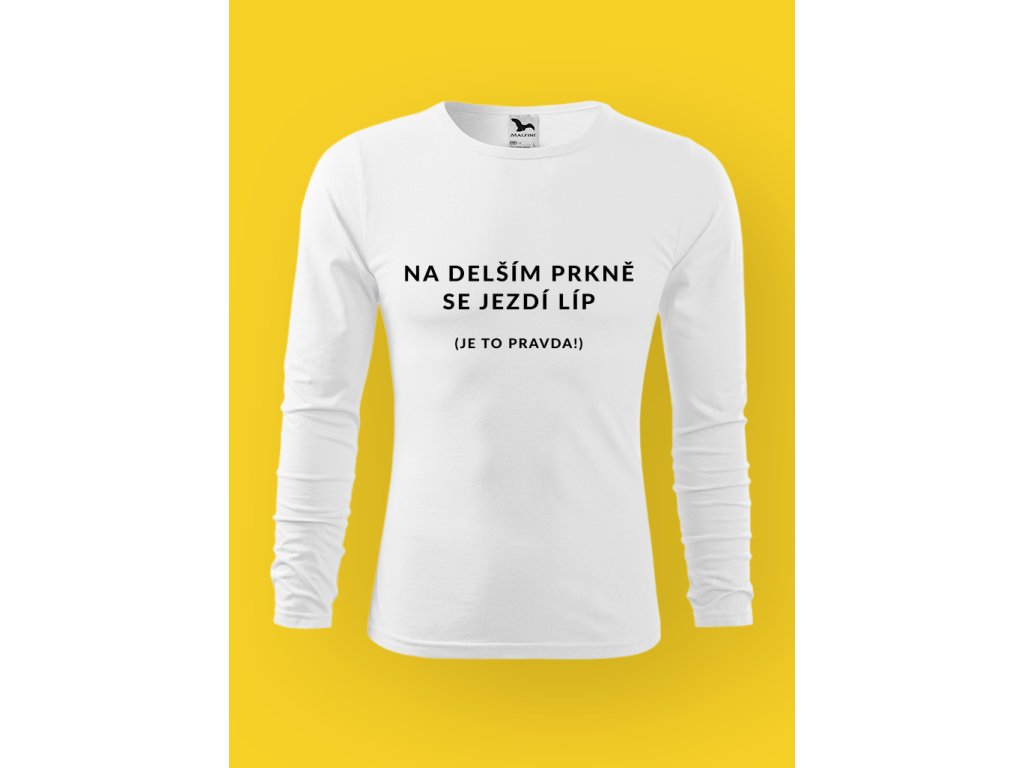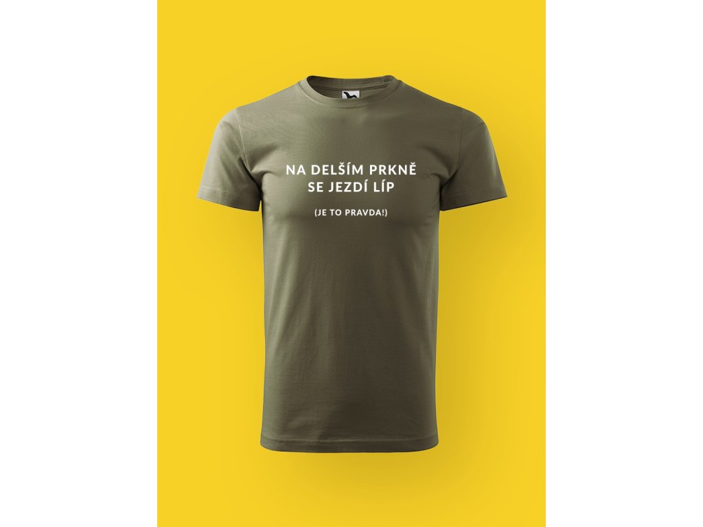 Pánské tričko s potiskem NA DELŠÍM PRKNĚ SE JEZDÍ LÍP