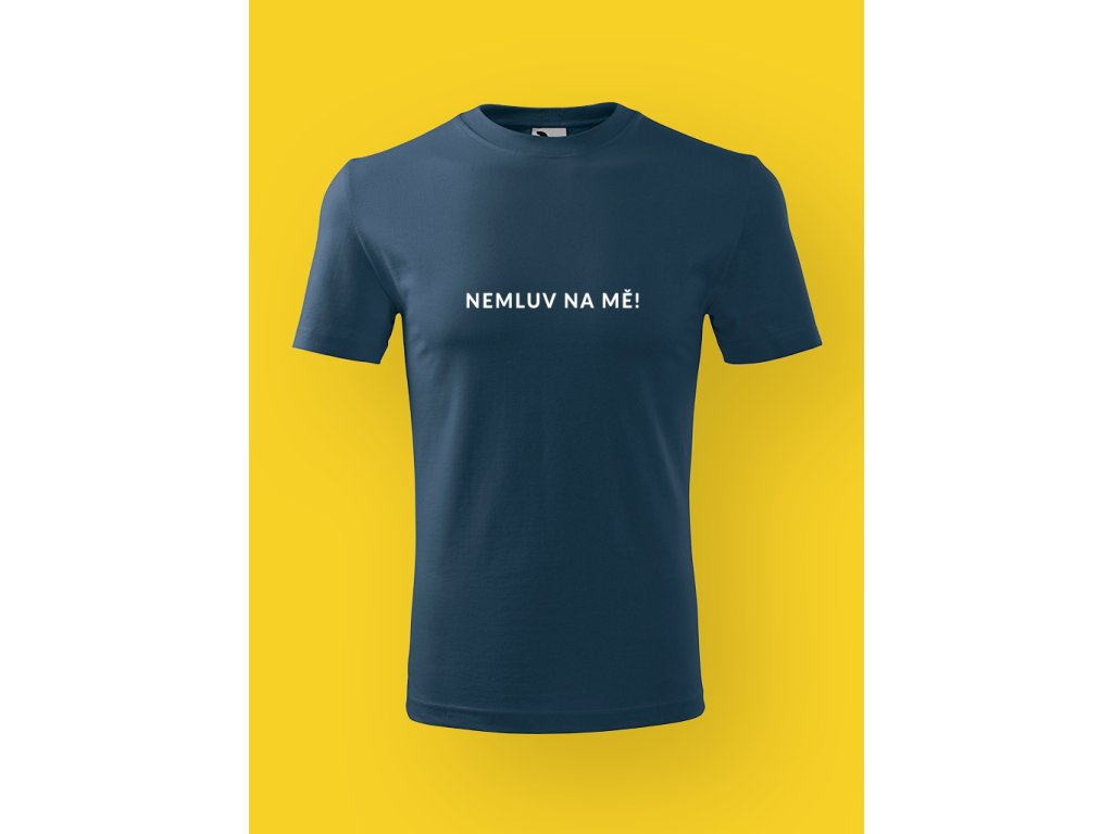 A to nejlepší? Každej, kdo nápis „NEMLUV NA MĚ!“ nerespektuje, se okamžitě odhalí jako člověk, kterému je lepší se vyhnout obloukem. Tohle pánské tričko funguje jako přirozenej filtr na idioty, drama, kecálky i přehnaně komunikativní kolegy.
