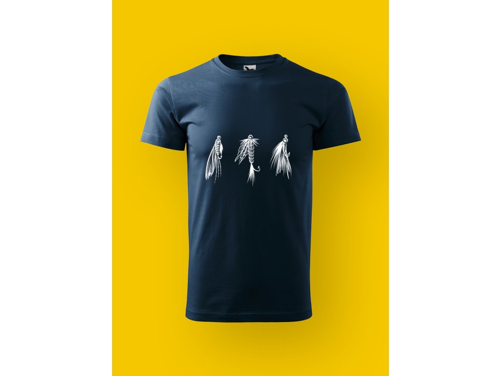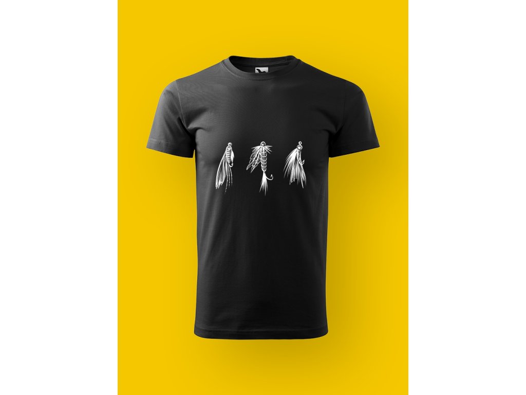Tohle tričko s muškami působí jako varování i pozvánka: „Buď zabereš, nebo plav dál.“ Tři mušky bohatě stačí k tomu, aby bylo jasné, že lovíš po svém, s nadhledem, úsměvem a drsnou elegancí, která nedává šanci slabým kouskům.
