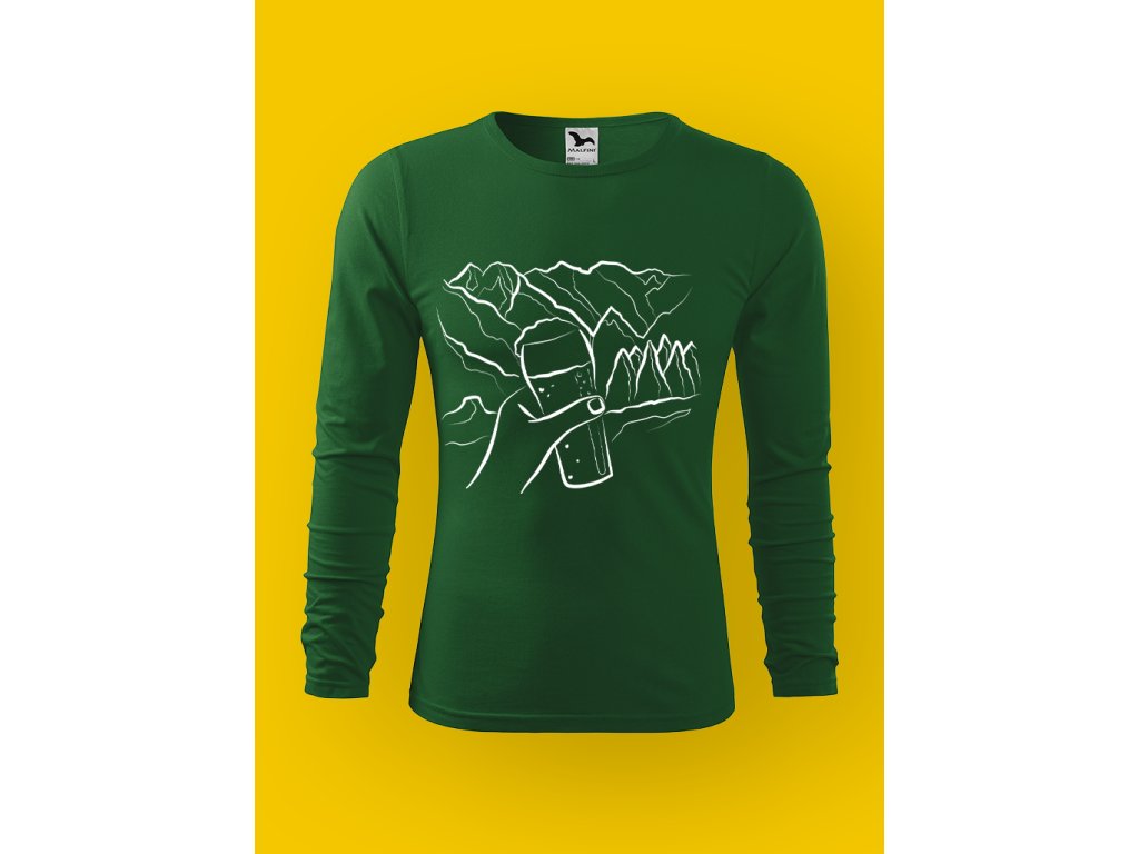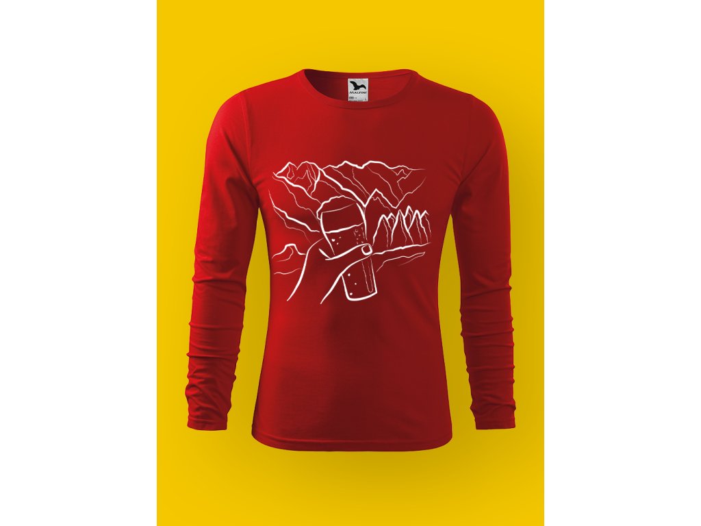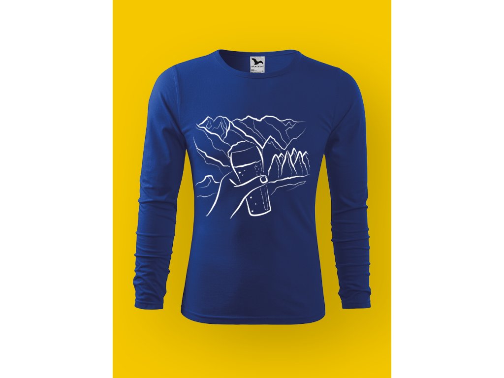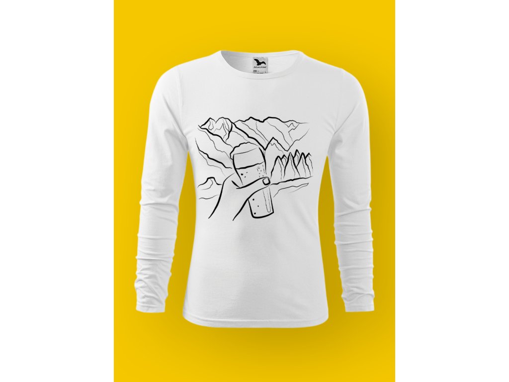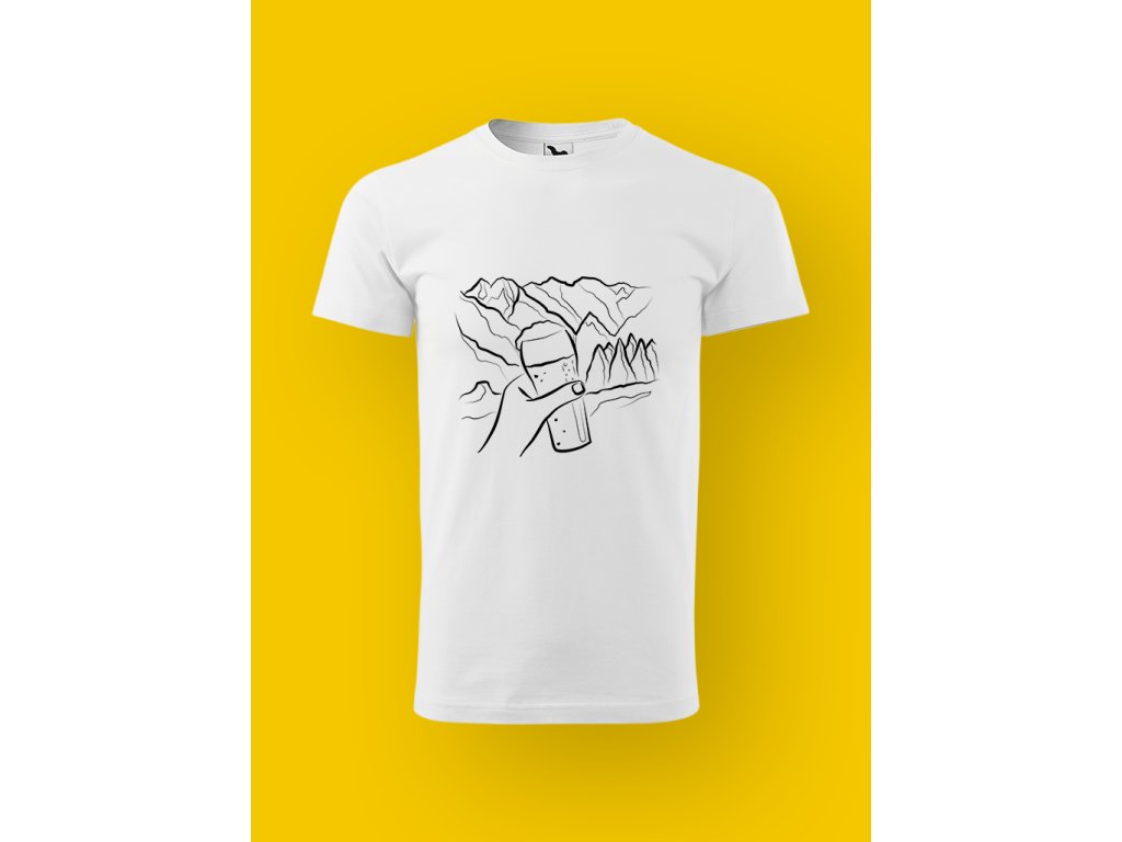 Potisk dokonale vystihuje realitu horských výprav: funíš, potíš se, přemýšlíš, proč to děláš… a pak zahlédneš pivo a najednou má všechno smysl. Půllitr na skále je přesně ten typ motivace, kvůli které i nejprudší stoupání začne dávat konečně smysl.