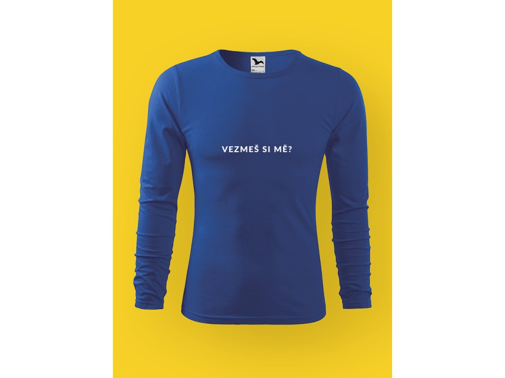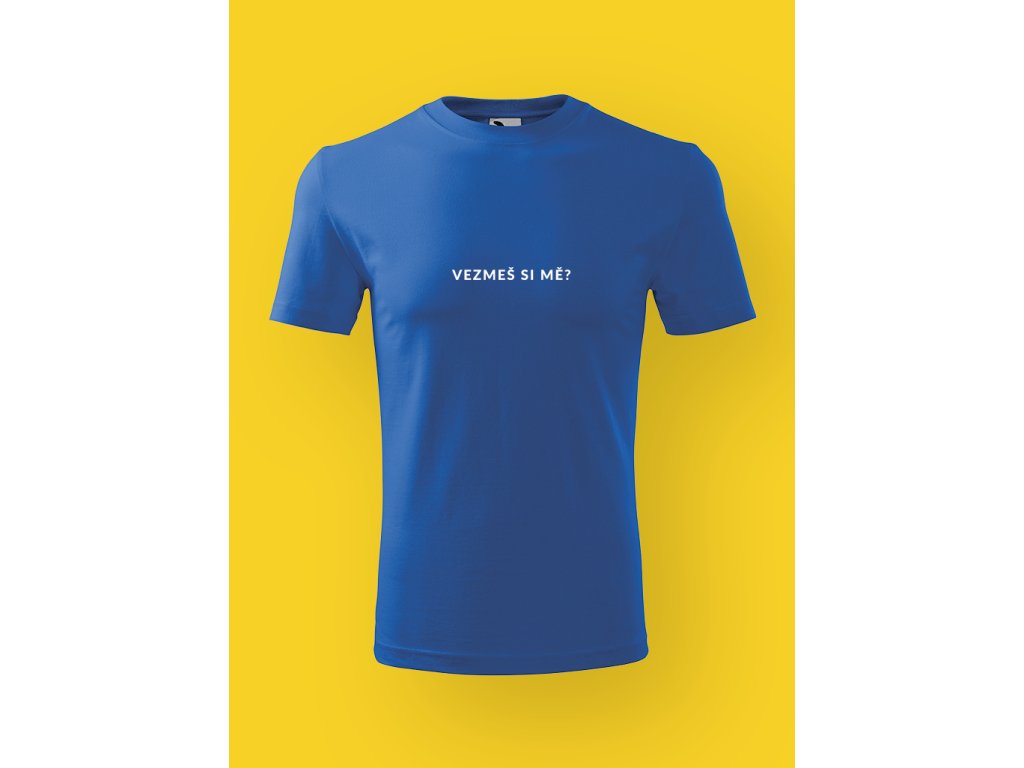 Tohle pánské tričko je chytrá hra se slovy. Věta VEZMEŠ SI MĚ? tu funguje jako vtipný dvojsmysl, který pobaví dřív, než kdokoliv stihne cokoliv říct. Je v tom lehká nadsázka a přesně ten typ humoru, který si každý přeloží po svém — a právě proto to funguje.