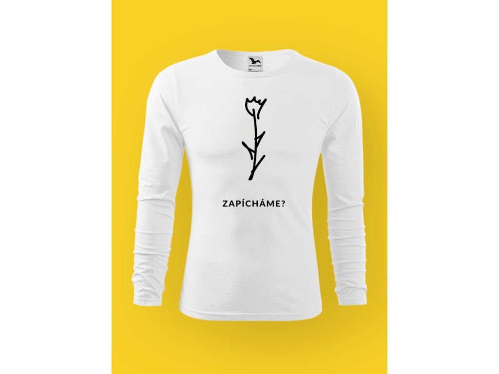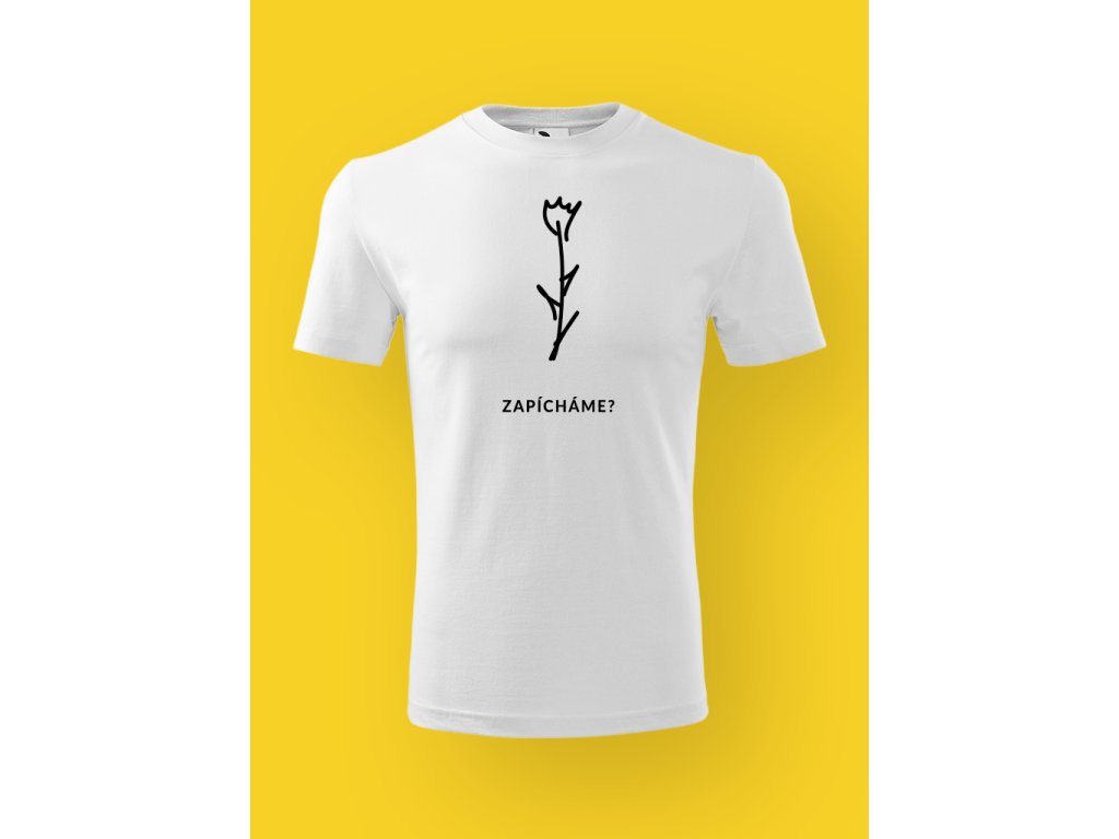 Tohle pánské tričko je malá jazyková past. Na první pohled minimalistická květina, pod ní jednoduchá otázka ZAPÍCHÁME?. A pak to přijde. Úsměv. Zvednuté obočí. Pauza. Každý si to přeloží jinak a přesně v tom je celé kouzlo.